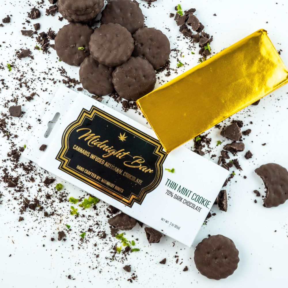 Thin Mint dark chocolate, topped with cookie pieces, gives you that memorable taste you got from the cookie we all know and love, but in a delicious chocolate bar that melts in your mouth, and is consistently potent.