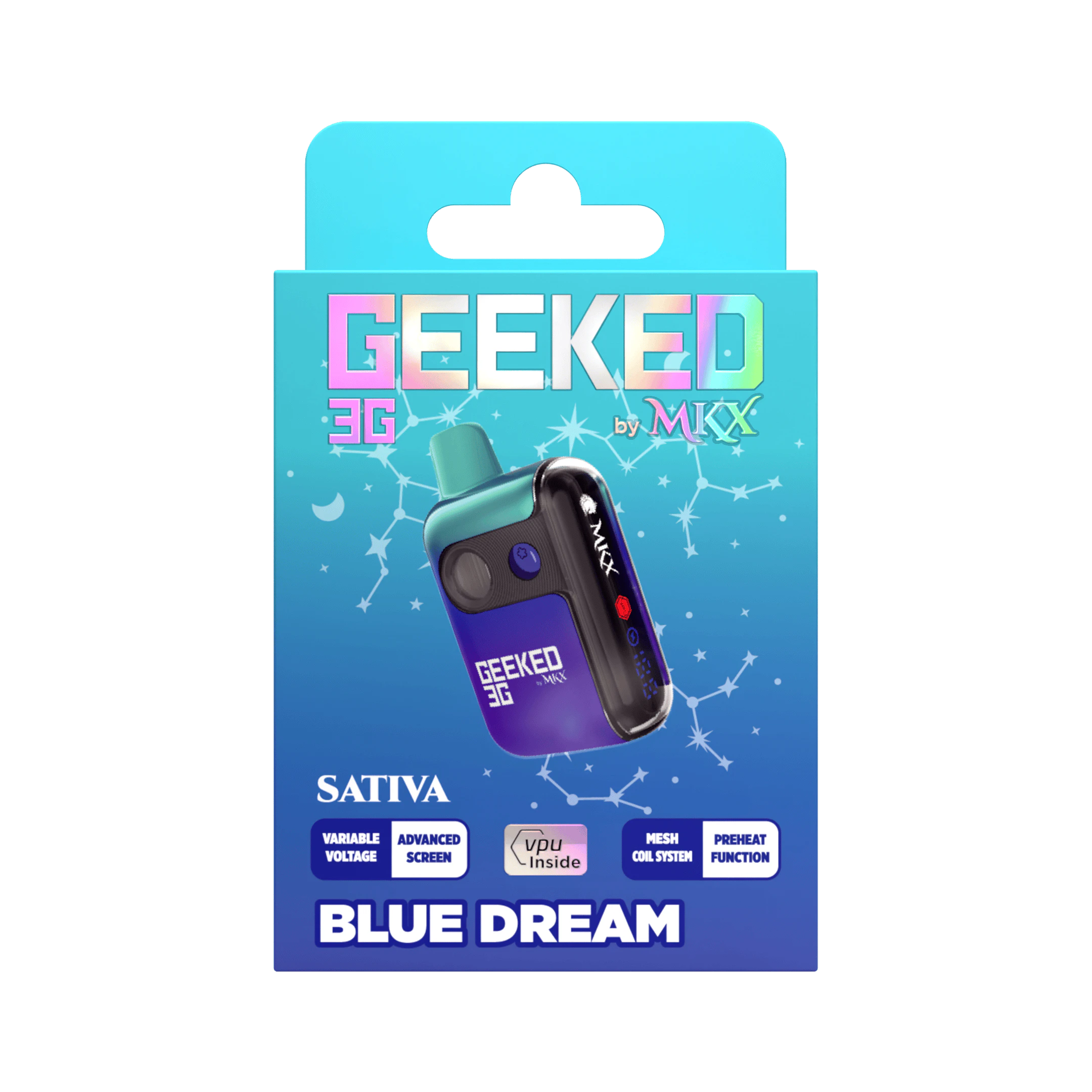 Now introducing Geeked 3G By MKX! We’re bringing the world’s most popular and reliable vape hardware to cannabis consumers—now designed specifically for THC. This game-changing device combines cutting-edge technology with premium cannabis extracts. Unlock the stars with a premium 3-gram THC disposable vape crafted for cosmic experiences. Designed with advanced LED screen technology, this device keeps you informed with battery percentage readings, variable voltage settings, and a pre-heat function for ultimate control. Powered by a mesh coil system, each puff delivers smooth, potent, and flavorful hits tailored to your zodiac sign. With 12 exclusive strains, one for each sign, your celestial match awaits. 3-Gram Capacity – More to explore in every session Advanced LED Screen – Stay in control with real-time battery info Extra Large Battery Capacity – 650 MAH battery, over twice the size of the average disposable Convenient Type-C Charging – Never miss a drop with easy access to fast charging Variable Voltage – Customize your experience Pre-Heat Function – Perfect for on-demand smoothness Mesh Coil System – Enhanced flavor & vapor production