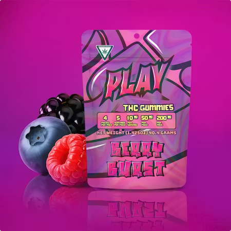 Get ready to Play harder with every bite. These sugar-coated Berry Burst Gummies hit with a sweet mix of juicy berries and a smooth, balanced high. Each piece packs 50mg of THC for bold flavor and an even bolder vibe.