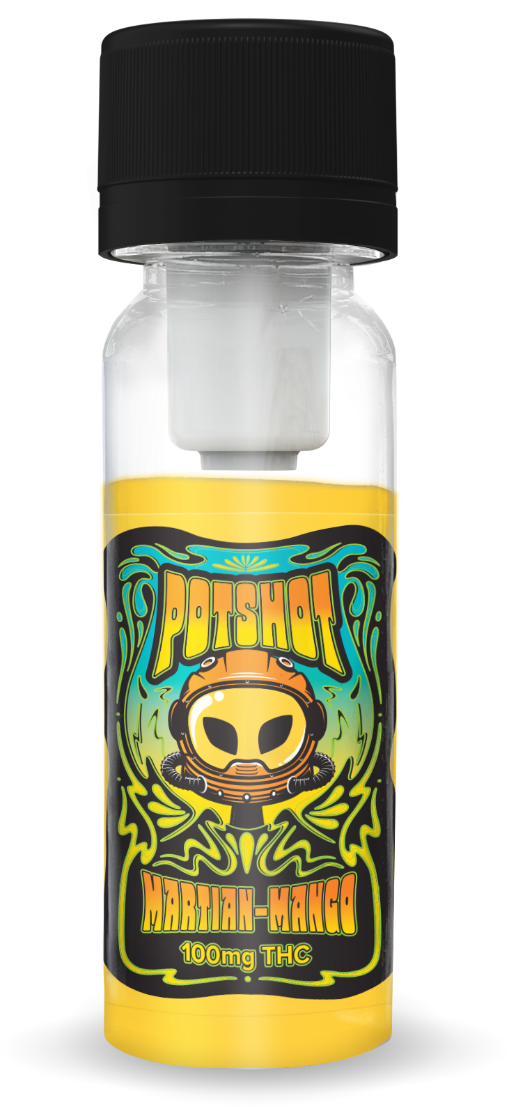 Journey to the red planet with Martian-Mango! This sweet, succulent mango flavor is a tropical dream with a cosmic twist. One turn of the cap, and your drink enhancer morphs into a dazzling orange delight, packed with the ripe, juicy essence of mango that’s sure to satisfy your stellar cravings. Martian-Mango is for those ready to explore uncharted highs, where the fruit is fresher and the buzz is stronger. Twist, Release, Blast-Off! Fast-Acting 0 Sugar & 0 Calories, 100mg THC per bottle, Discrete & Smoke-less