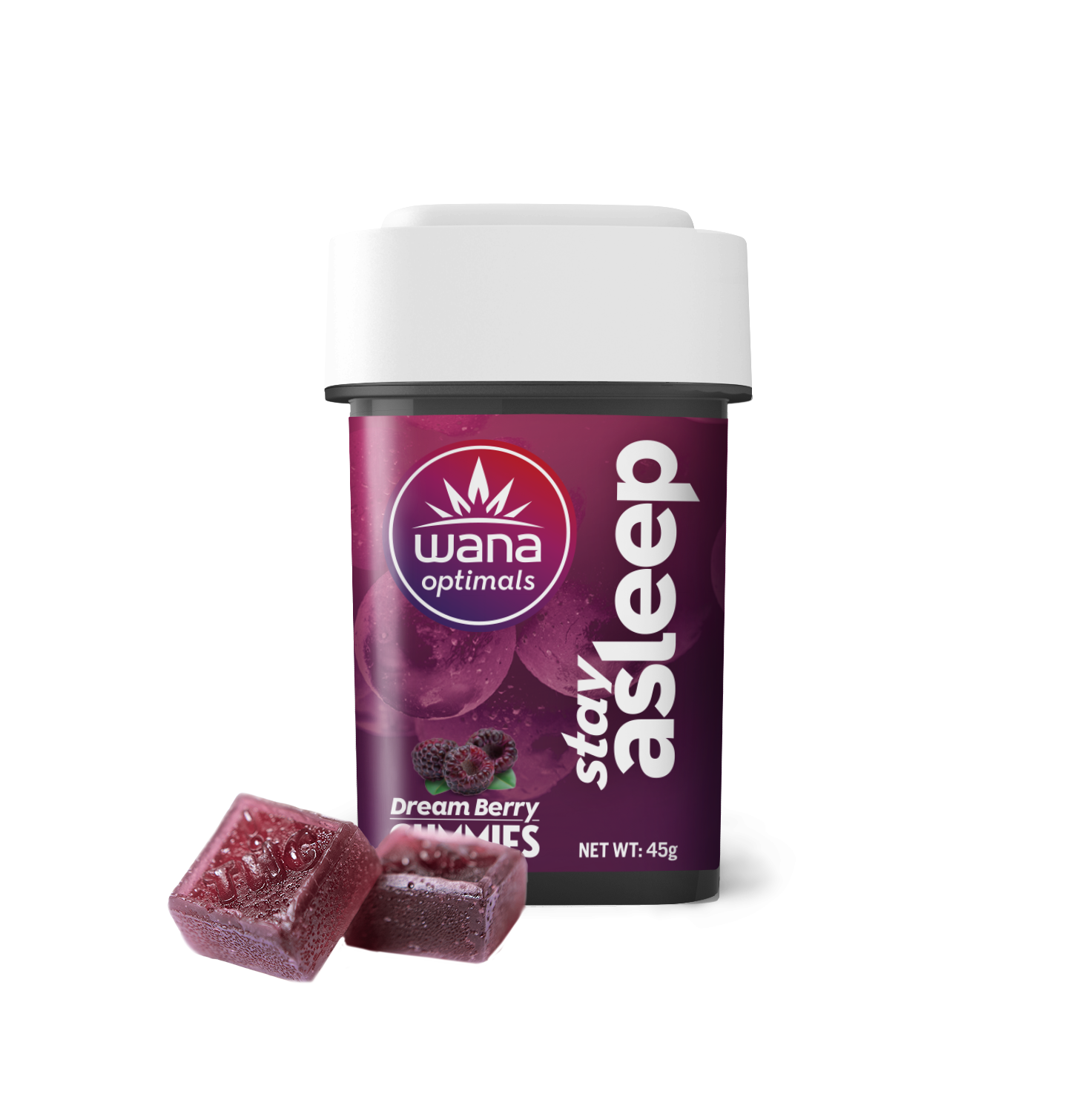 These tasty Dream Berry gummies offer a gentle, calibrated solution to the root causes of sleeplessness – including stress and physical tension. Their custom blend of CBD, CBN, CBG, THC, and more than 30 specialized terpenes deliver restful, long-lasting sleep with no next-day grogginess. 20MG CBD/ 5MG CBN/ 5MG CBG/ 10MG THC per piece